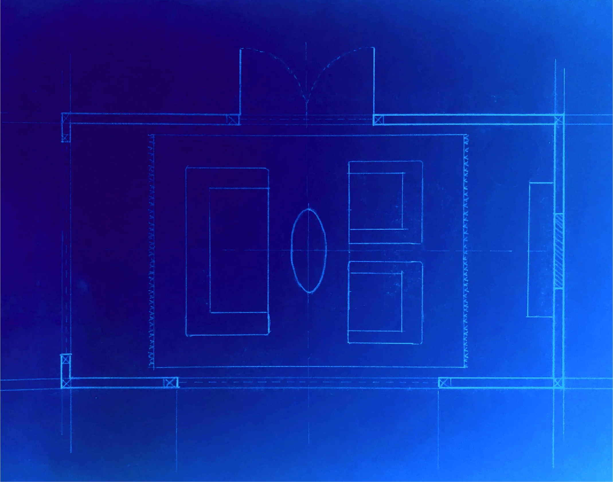 A floor plan for furniture placement. This diagram is to-scale according to the measurements you send.